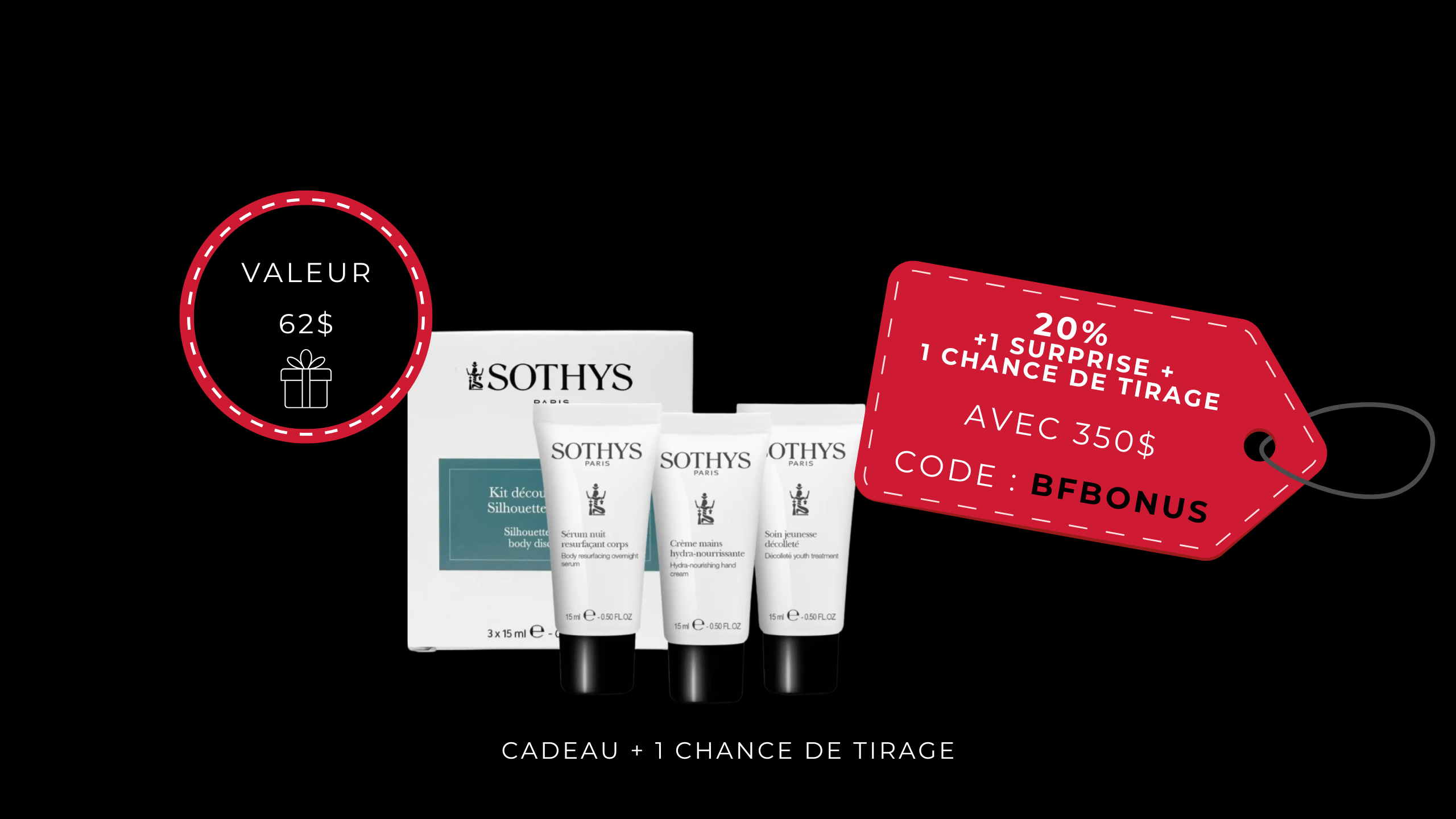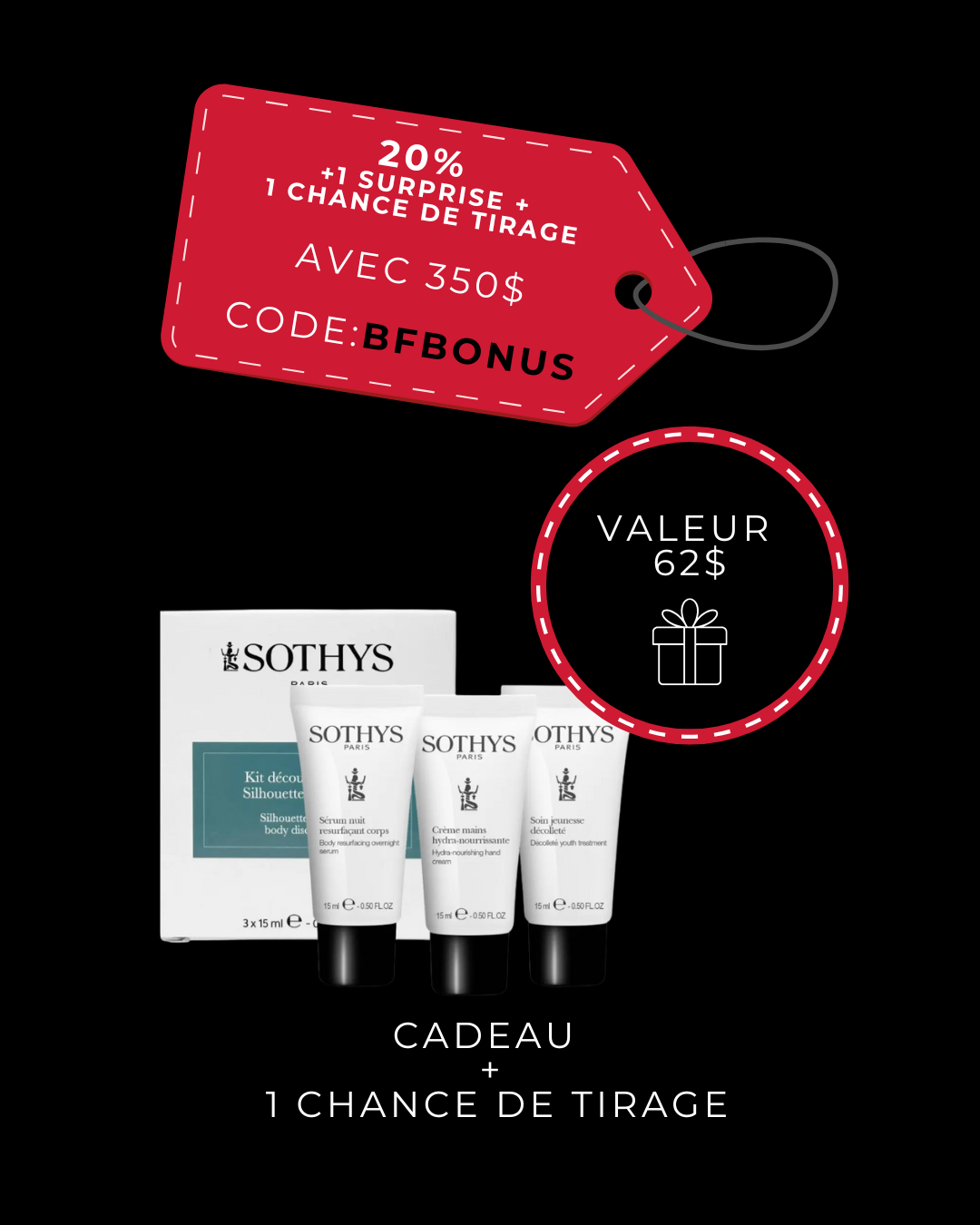 Joanne - OttawaJe tiens à vous remercier pour ma commande, mais aussi pour les extras (échantillons et la belle pochette Sothys), merci ! ! Je suis vraiment impressionnée par toute cette belle énergie que vous avez ajoutée à ma commande. Un gros merci pour l'excellent service et les petites intentions.